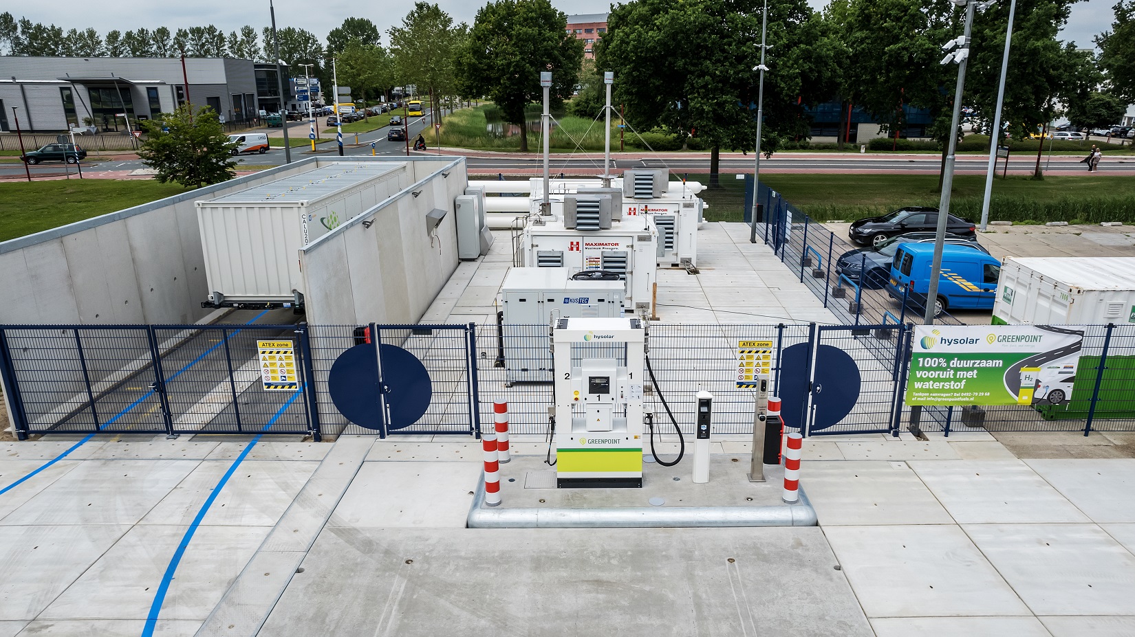 Het waterstoftankstation is voorzien van een viertal vulpunten bij een druk van 350 resp. 700 bar: